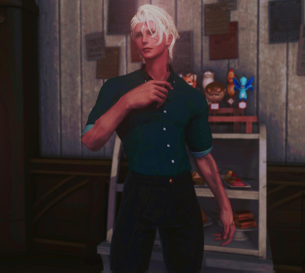 Born in a small, poor village outside of the Capital, Evan grew up as an only child. His father died before he was born, and his mother did her very best to raise her only child. Evan struggled as a poor kid, bullied and bullying in turn, until his aptitude shone through. Given a place in the Military academy, Evan found his ticket to rise up, and he did his very best to knuckle down and study as hard as he could. Despite being picked on by some of his peers, Evan graduated top of his class, and was actively scouted for a place as a Medicus in a special support group that shifted around as the need was required. This guaranteed his Mother a comfortable life in the Capital.Evan was sent to a variety of battlefields across the Star; war was a vile thing he soon discovered, but he focused on his role. Saving lives. As a Medicus, he would make sure to provide triage to both friend and foe, and learned a variety of combat-talents. However, with the war in Ala Mhigo starting to turn, Evan was summoned home along with his Legion. That’s when the summoning of Anima happened. Whether by luck or fate, Evan was spared from the tempering, and could only watch in horror as his comrades and friends turned on eachother. Evan did what he could, but soon fear gripped him. He blacked out and awoke deep in the snowy tundra, half-frozen to death, covered in blood, stumbling his way away from the Capital. On foot, he made his way West, towards and through Ala Mhigo, until reaching Baelsar’s wall, and then Gridania. Now in Eorzea, he followed his intuition and found a place refugees were welcome; the Drunken Moogle tavern.